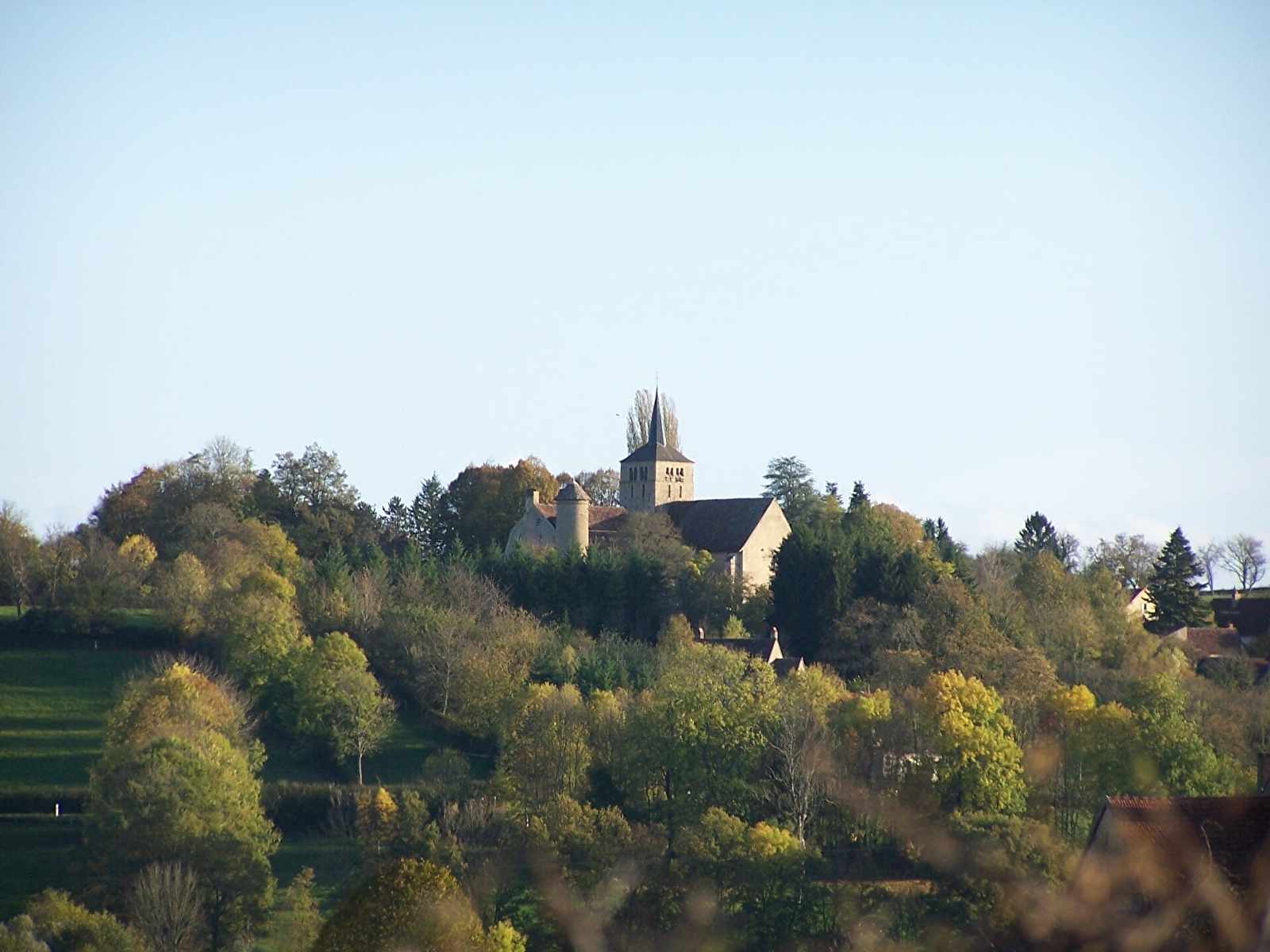 3 | Après le bois, tourner à gauche et suivre toujours ce chemin, qui monte ensuite jusqu’à la route (très belles vues sur le Morvan).